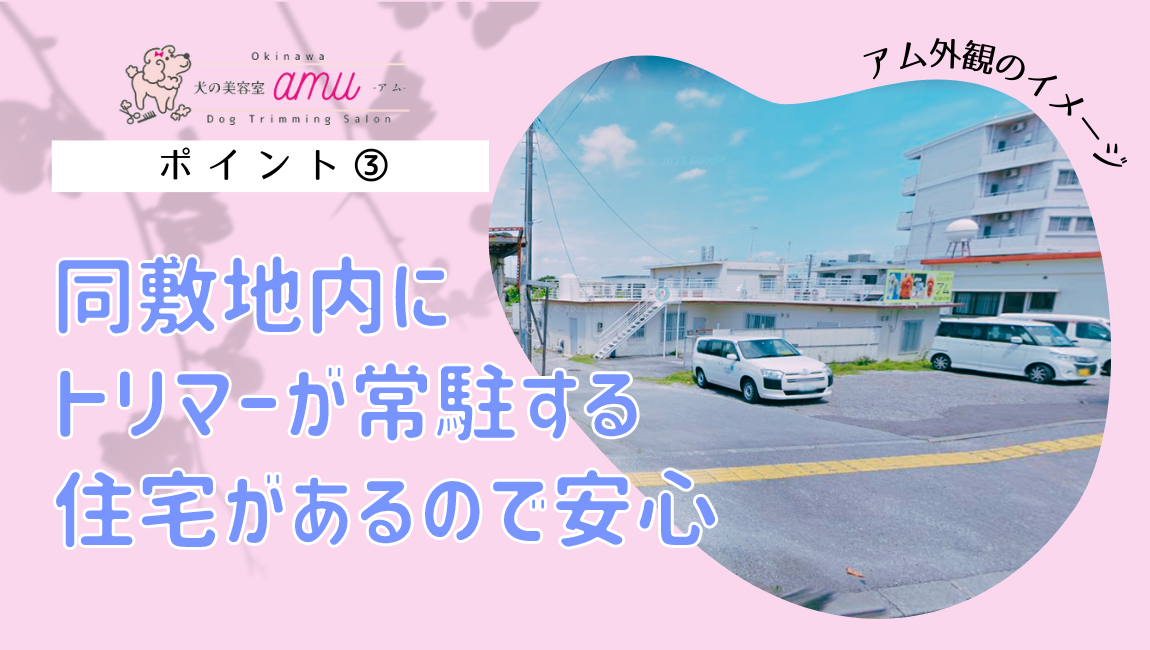 また同敷地内に専属トリマーが常駐しております住宅がありますので、ワンちゃんが夜独りぼっちになる事がなく安心してご利用頂けます。